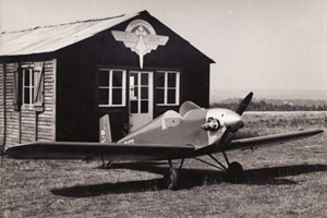 These pictures come from the Tiger Club archives and show what is thought to be a couple of the first Druine Turbulents at Pontivy aerodrome. The second picture is from Pontivy, in the 1950’s showing the clubhouse with F-PHFQ parked outside ready for it’s next flight.