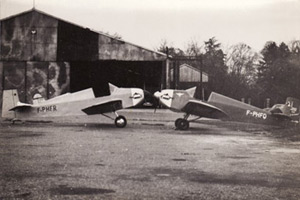 These pictures come from the Tiger Club archives and show what is thought to be a couple of the first Druine Turbulents at Pontivy aerodrome. The second picture is from Pontivy, in the 1950’s showing the clubhouse with F-PHFQ parked outside ready for it’s next flight.